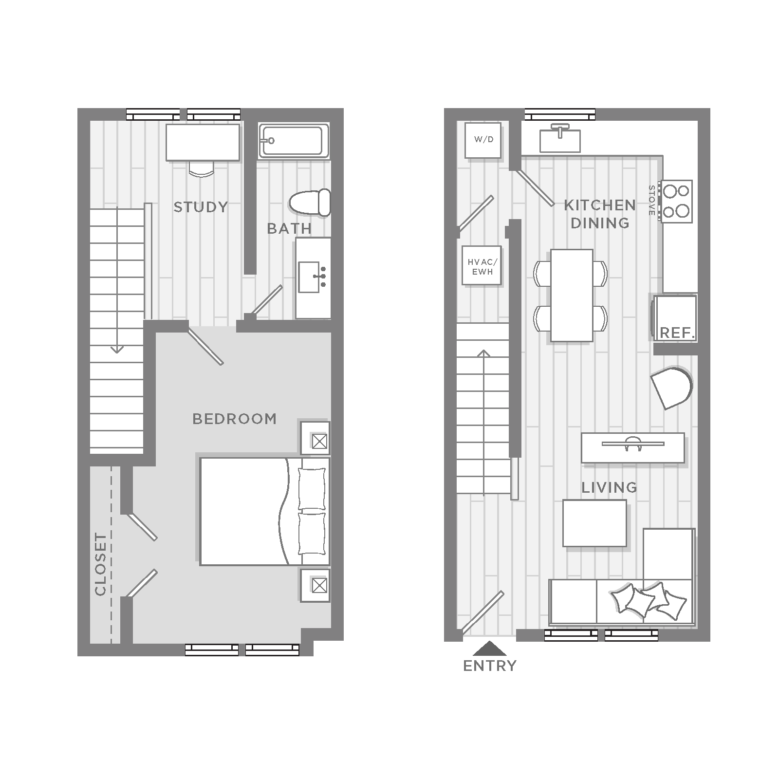 Thrive is the newest apartment community in Fayetteville and offers one bedroom flats and townhomes. All of our apartments feature a study area that can be used an office, study, reading nook, or additional living space. Thrive offers a state of art fitness center, multiple co-working spaces, and a community room.